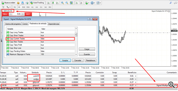 Hello, I have detected an ERROR, when the EA is deactivated and configured so that it does not copy the already open positions "Copy current trades" "false", if you activate the EA it continues to copy the open positions of the active chart, but the other open positions do not are copied. I do not currently have any indicators or other active Expert Advisors on the MT4 platform. Thanks