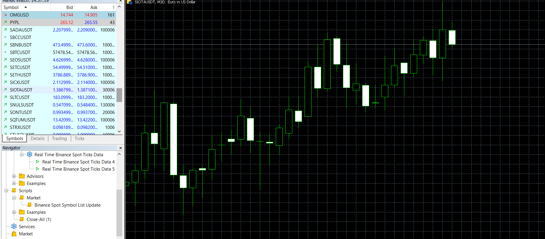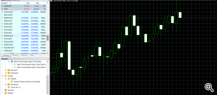 Real Time Binance Spot Ticks Data