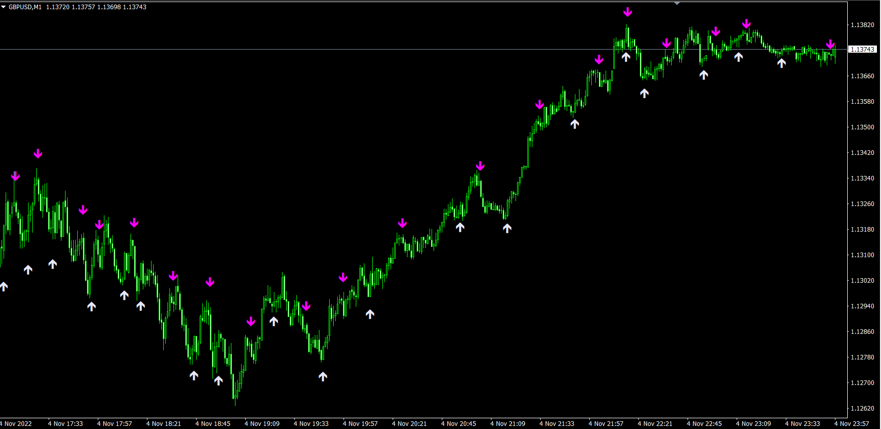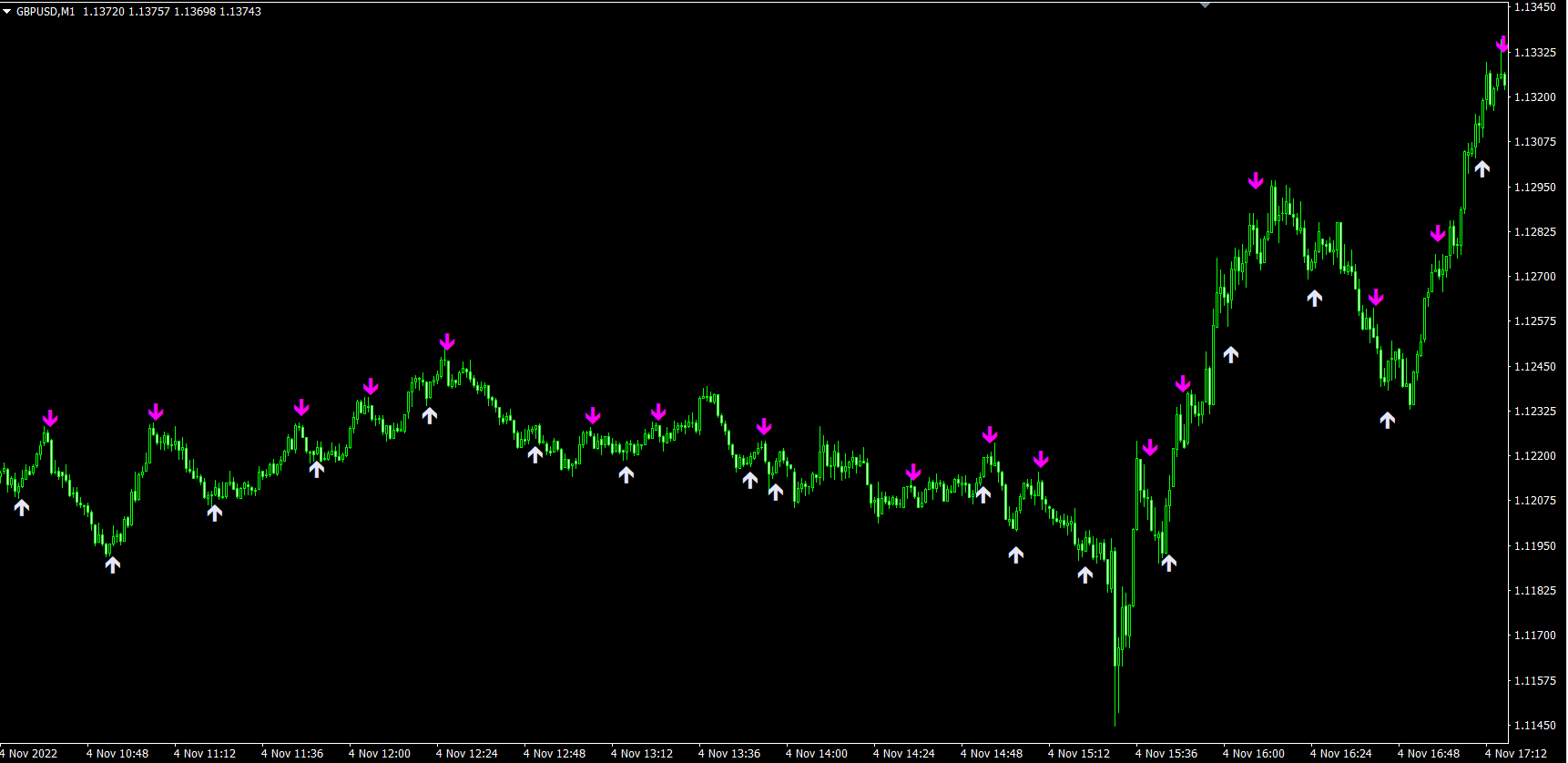 These are recent Apollo Striker signals on GBPUSD M1 using default settings. If you change the settings a bit, you can make the signals even better! Moreover with the help of only two available parameters you can adapt the signals to any pair and time frame!