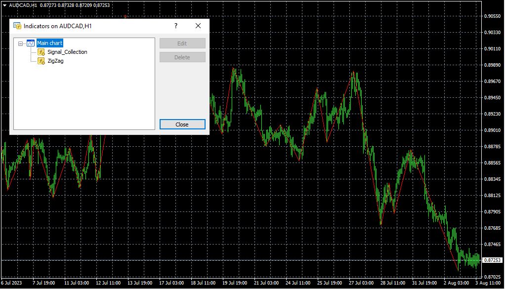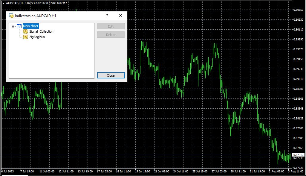 2. Drag the 'Signal Collection' indicator onto the same chart.
