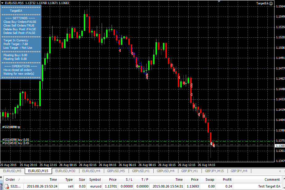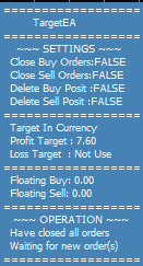 Is this EA able to close ALL positions at once when target is reached? So for example: I open 5 buy positions and 7 sell positions with different lot sizes and a few pending orders. Now the TOTAL profit reaches my target. Will the EA close all buy AND all sell AND all pending orders? is this possible? close after total basket profit of all buy AND sell orders..Possible with this EA?