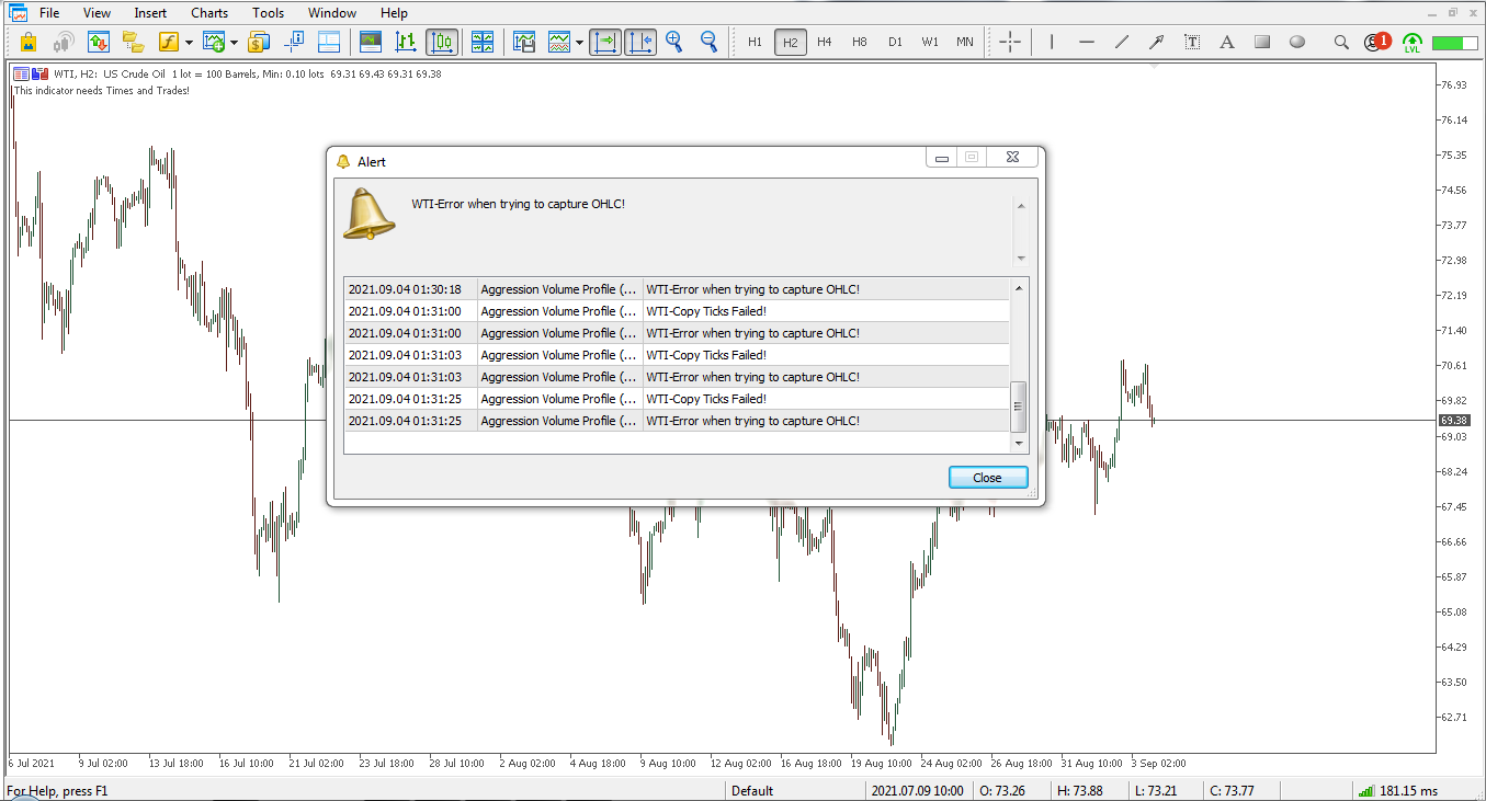 The indicator needs the trading information (Times and Trades).