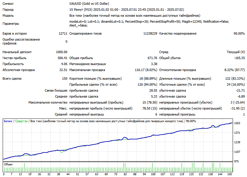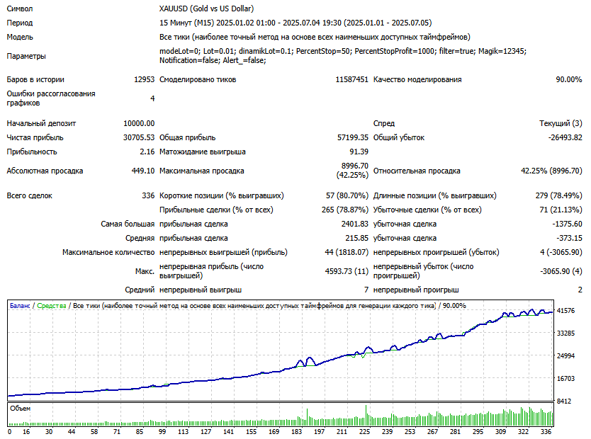 Система продолжает обучаться, в настоящее время для обучения системы уже использовались котировки золота с 1.07.2024 до 31.12.2024