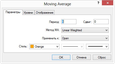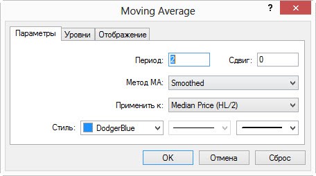 MA вы можете использовать на свое усмотрение, мне он помогает определить возможный тренд дополнительно. Параметры MA на скрине.