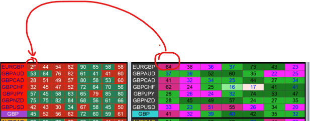 My approach involves cross checking pairs with another dashboard. Because the listing in your Dash appears 'random', it makes the process of comparing data harder.
