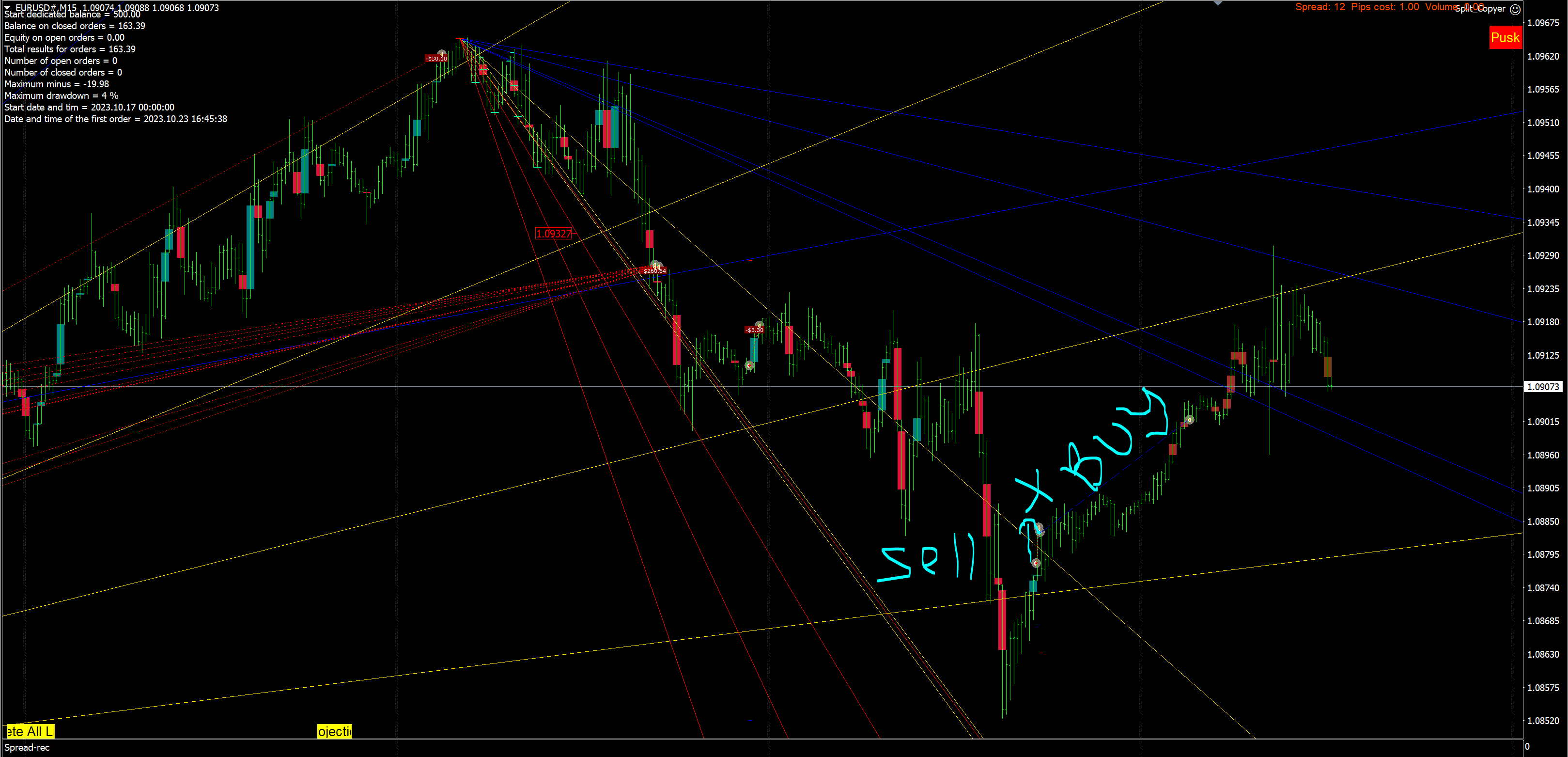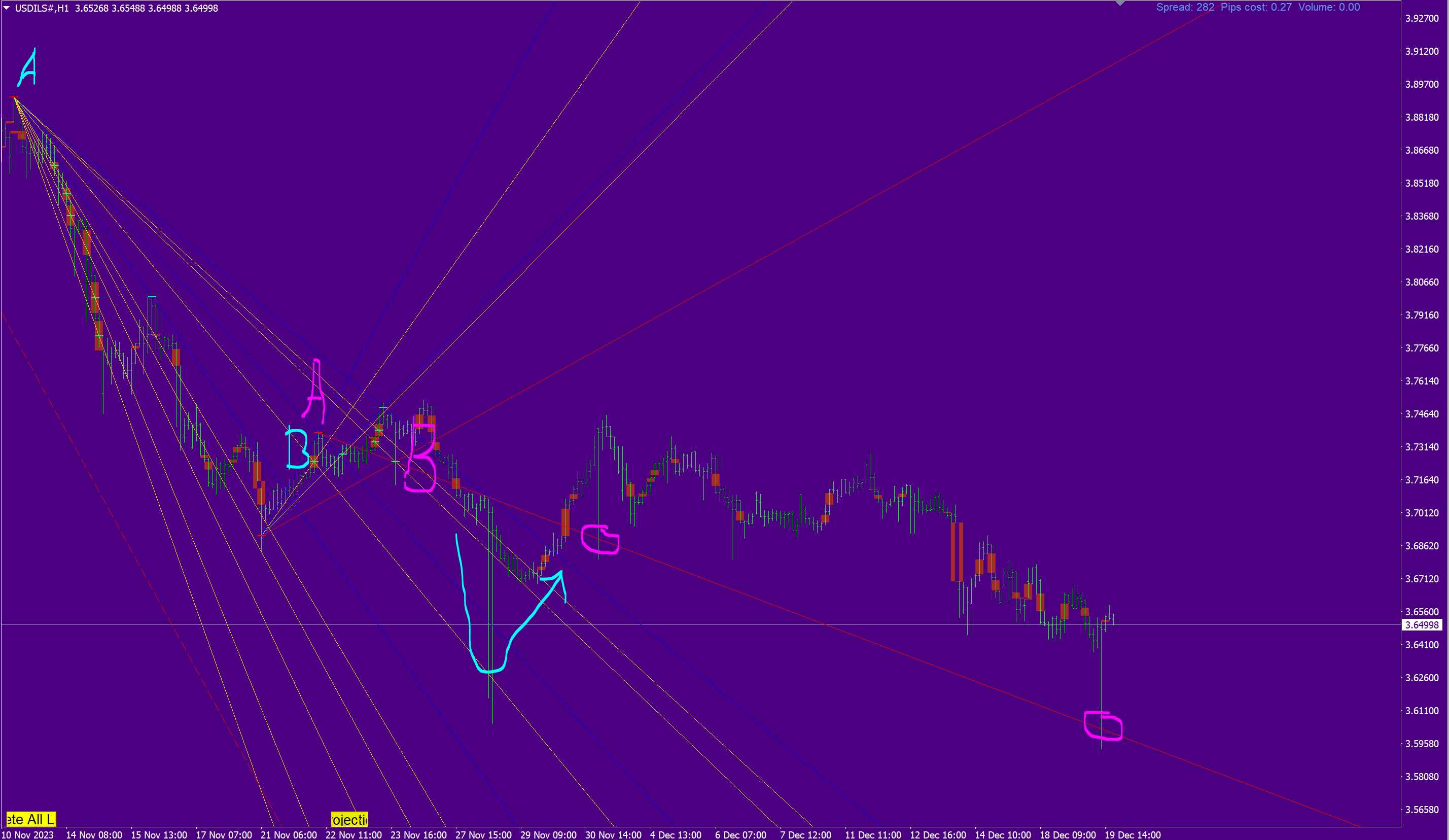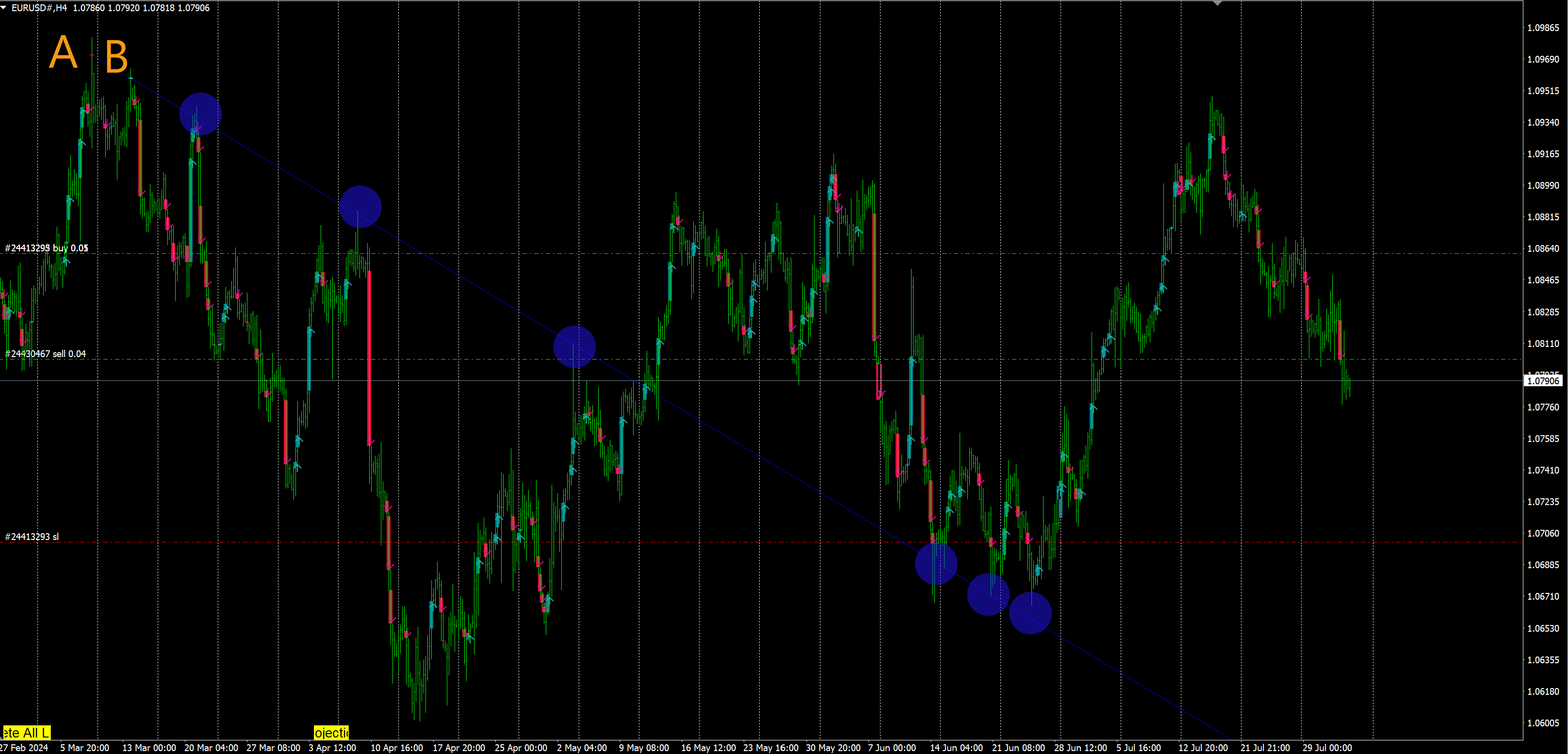 Trade with "Active lines EA" helper for auto trading by projection lines.