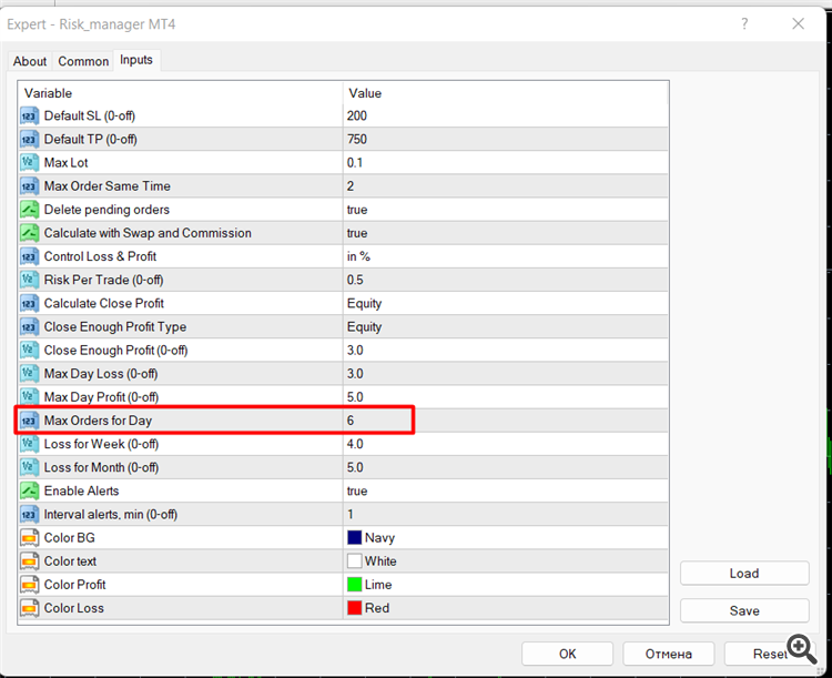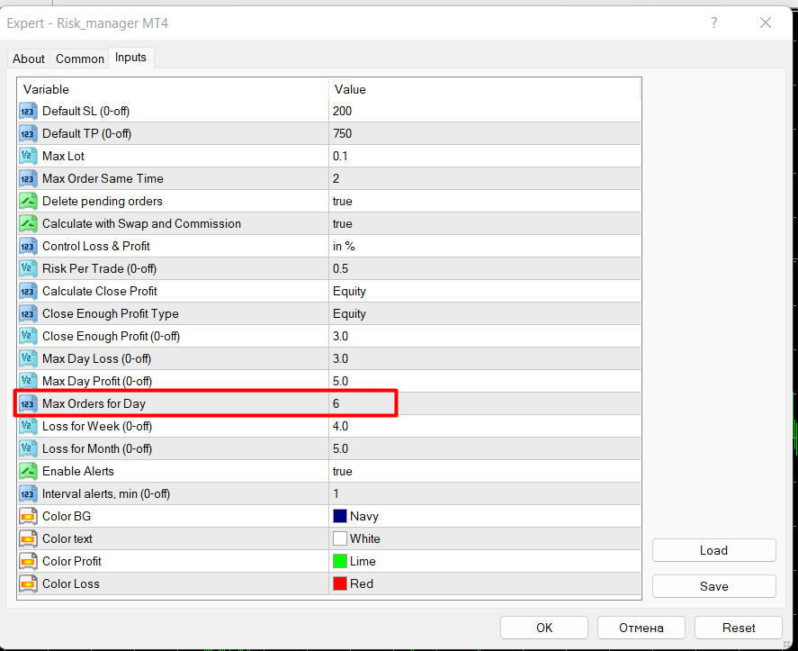 The risk manager controls the total risk on your account in% or in $ of your choice, as written in the description. For example, you set a risk of 20% loss and you have 4 robots working on your account and plus you manually opened trades, and suddenly force majeure happened and the market shot up 2000 points, the risk manager will fix the loss you have set and turn off all robots and will close all orders, thereby saving your account from even greater losses in the event of a market fall. This is how it works.
