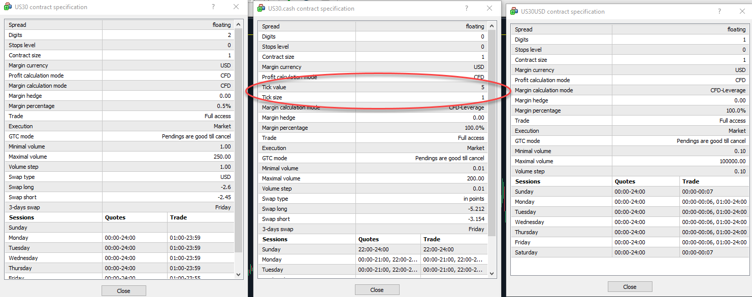 It's still the same on TFF. example on US30 x5 and on Gold x100