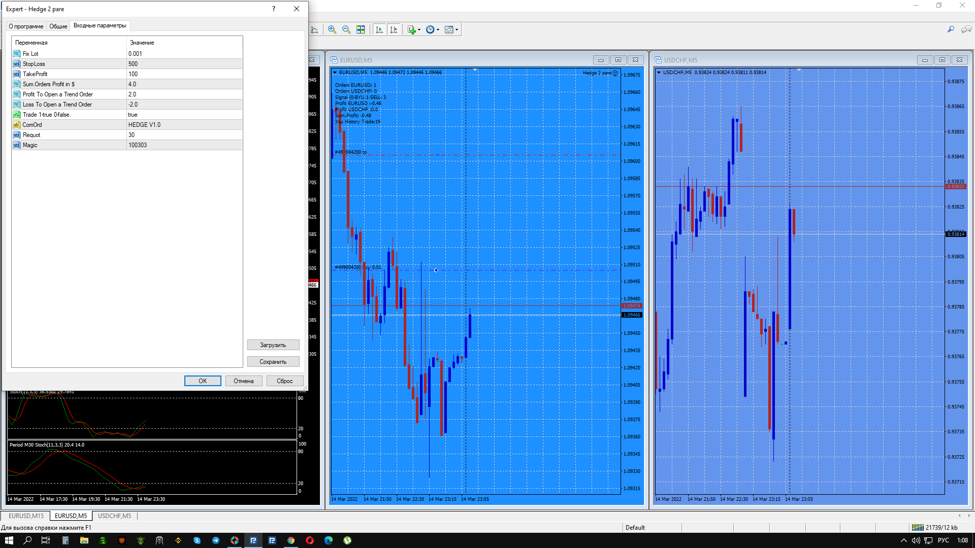 2 - I did not know that I just need to open the EUR / USD chart and both windows (EUR / USD and USD / CHF) have been open for a long time and EA is active on both, does the result make a difference?