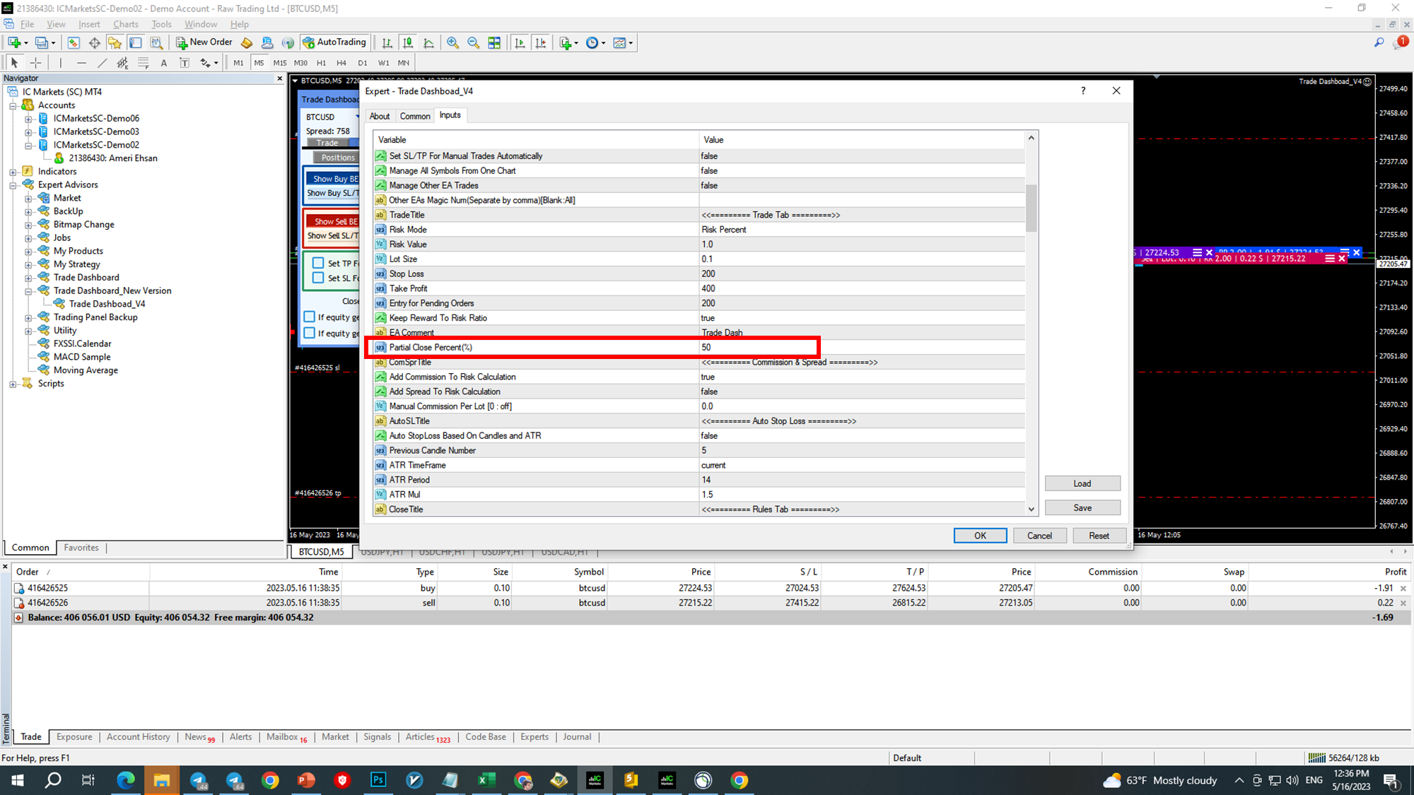 Hello again. I was wondering: is there a way to change the default % to partially close on the panel? I would like to set my own rather than the fixed 50% that I keep seeing now.
