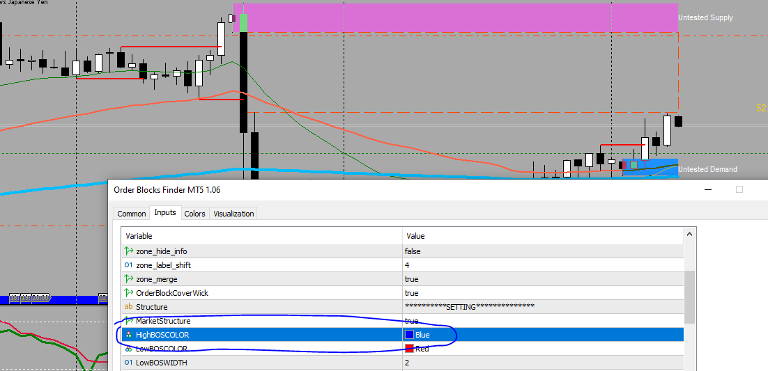 Just notice that the MarketStructure HighBOSCOLOR does not appear at all. I can only see the LowBOSCOLOR. Please see attached.