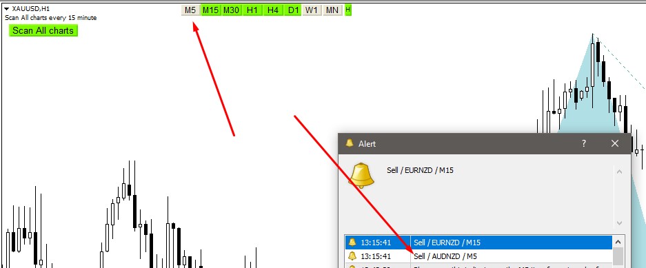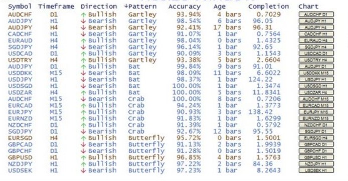 I can say that your scanner is good but why don't you create an dashboard where we can see which pair are detected and if any of these pair are detected and click to check it will open with harmonic pattern. Please think about it cause alert showing only once. Like this one
