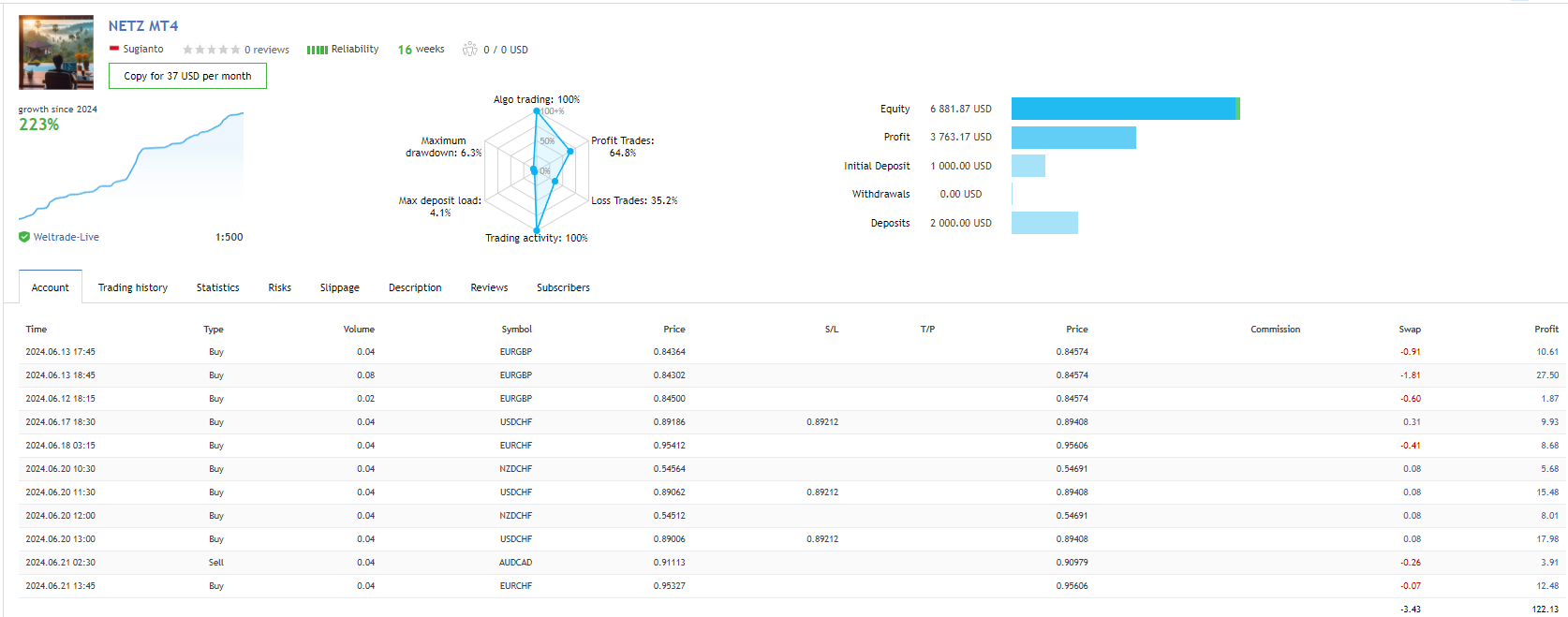 What I like most from NetZ is not just the beauty of safe swing trading, but also the freedom of running semi auto trade based on my own trend indicator. This is the result from my yesterday semi auto trade