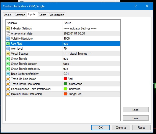 Basic universal indicator settings for EURUSD, GBPUSD, AUDUSD, USDCAD.