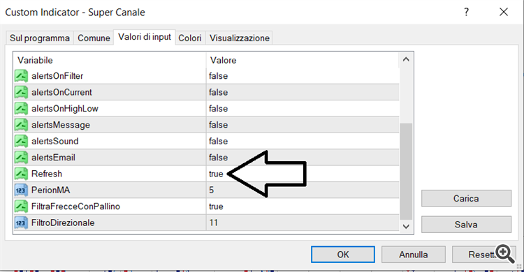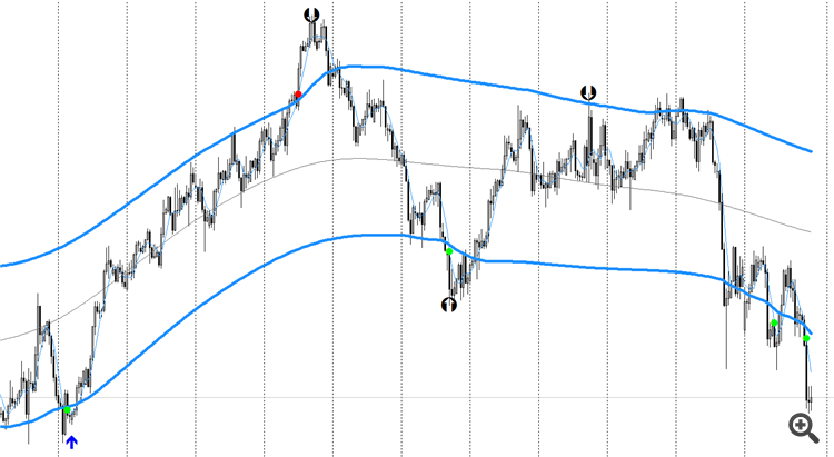 Ciao, questo tipo di canale dovrebbe essere utilizzato con altri indicatori per confermare il loro segnale. questi canali vengono ridipinti in situazioni di grande movimento di tendenza ed è per questo che ho inserito il punto come avviso e il filtro direzionale (come puoi vedere nell'immagine). Ovviamente devi fare i test in base al tuo modo di fare trading e per un trading più sicuro devi usarlo con altri indicatori. Se guardi da vicino anche le bande di bollinger anche se non sono ridipinte danno segnali falsi e le uso con altri indicatori per confermare il loro segnale in ingresso.