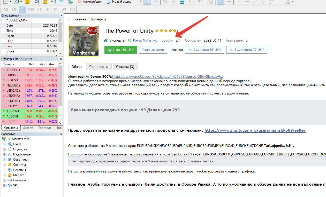 Please know that v2.1 is not on MQL5.