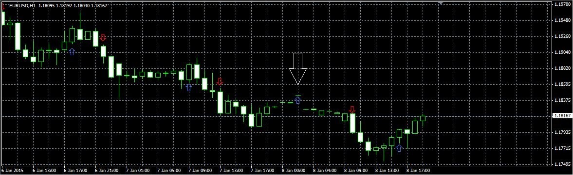 In the paid version arrows appear as the minute indicator free? Practically at the beginning of the birth of the new bar?