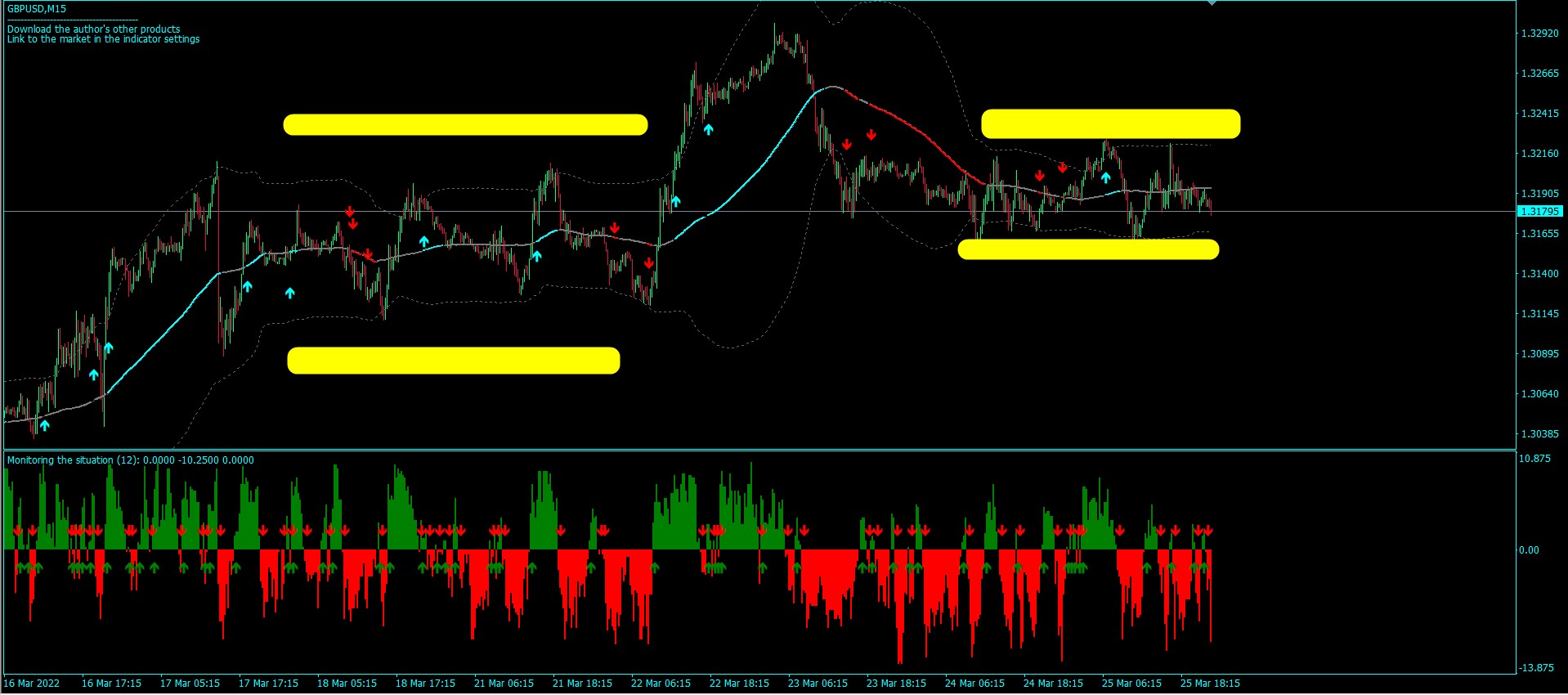 A good setup for trading GBP USD on m15 together with my product and Bands: Monitoring the situation