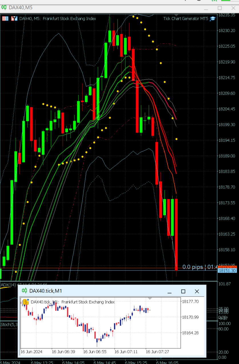 The Tick Chart Generator is still not working despite a fresh installation (same version number 1.3), all settings checked, all necessary buttons on. The Date is currently showing 16 June 7:27 when MT5 server time is 6 May 1635 (near the end of the big bear candle on the M5 chart) currently 6 May 2024 14:35 (London time).