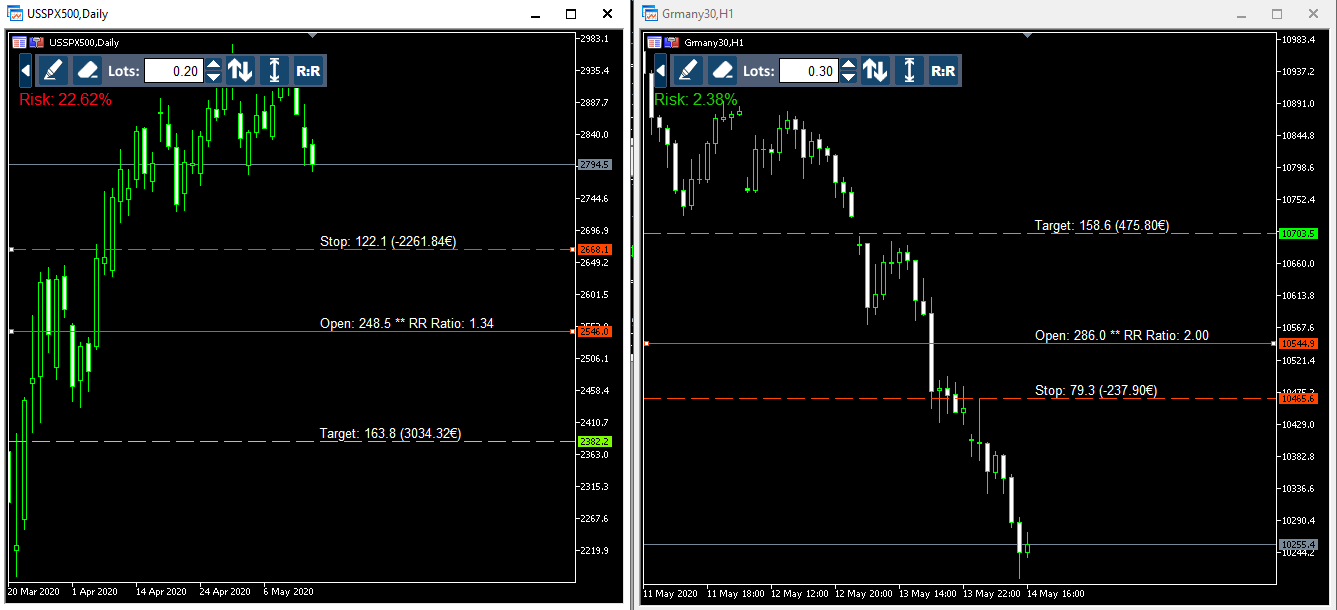Script to send market orders with Stop Loss & Take Profit defined by Risk Reward Ratio Indicator for MetaTrader5.