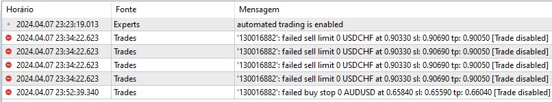 Olá. Instalei o robô hoje, mas, vem apresentando o seguinte erro:
