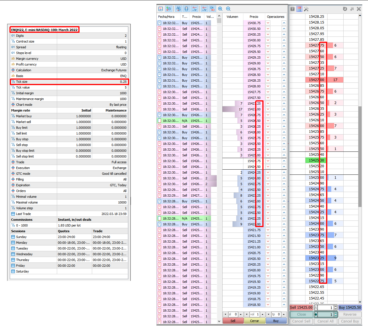 Hi Yuri, look at this NASDAQ (NQ) DOM from CME. I think the price would be adjusted to it's tick size specification.