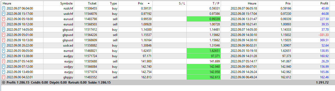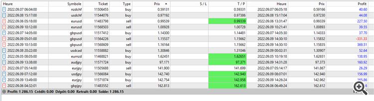 Here are the profits of my week on my small MFF account ( I use very safe setting, but you can see all the order in profits... )