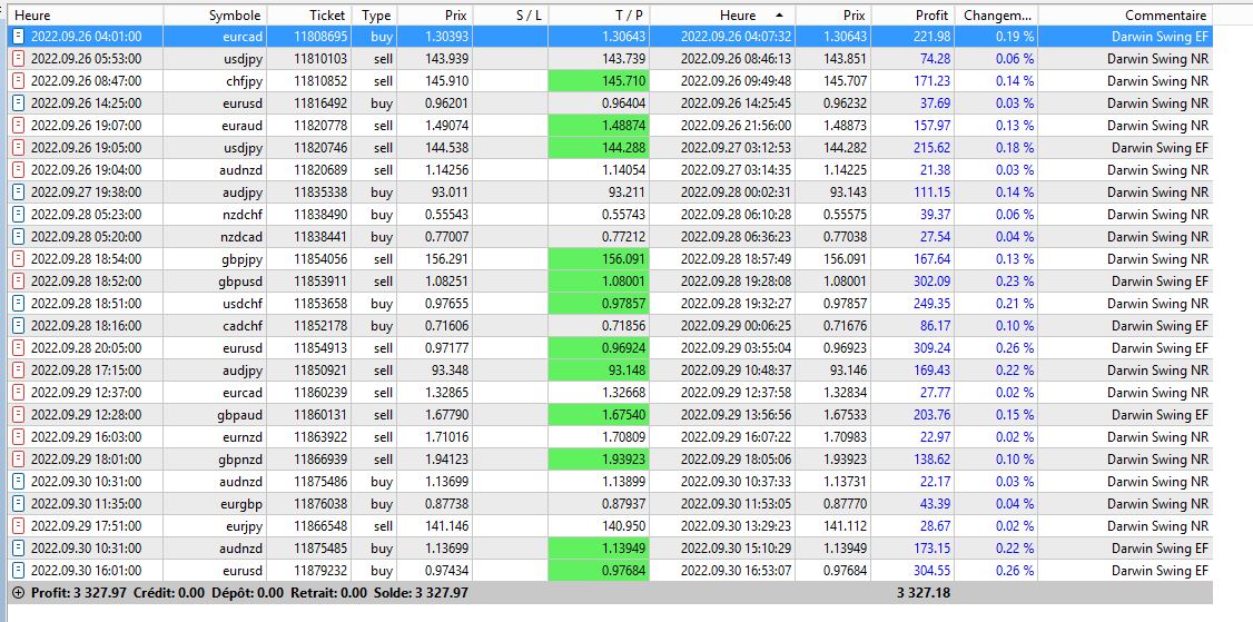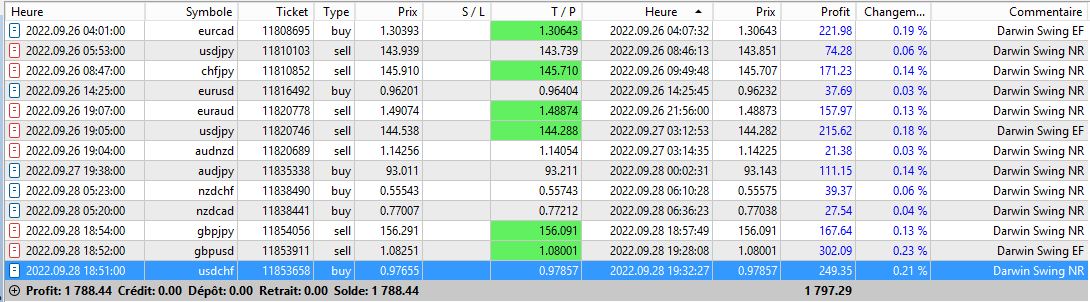 Every week, I post the profits and the details of the orders placed by !!! Darwin Swing !!!