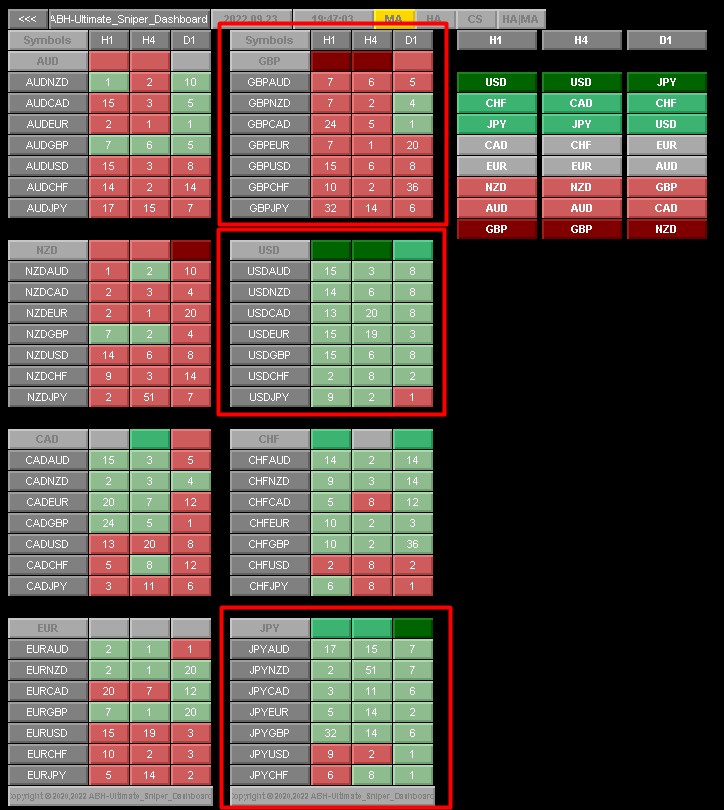 ULTIMATE SNIPER DASHBOARD - JPY STRONG, USD + CHF WEAK