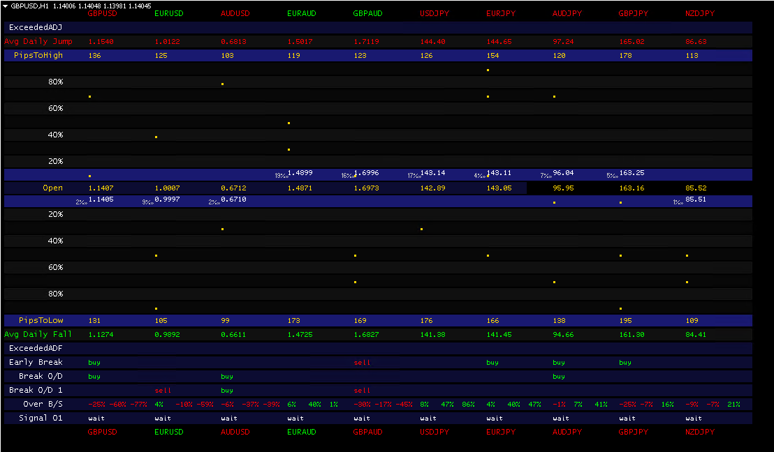 + Visually shows movement of price flowing between Open Price to ADJ or ADF.