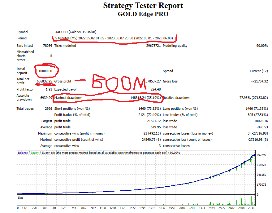 I just tested again this Gold Edge Pro on XAUUSD market, and it found that now almost 99% really follow market trend, so it is closed profit all the time from the first trade (80%) and after 2nd trade the rest of it, but I take only small range TP only, it is about 250pips only and already start with trailing stop at 120pips on cent account
