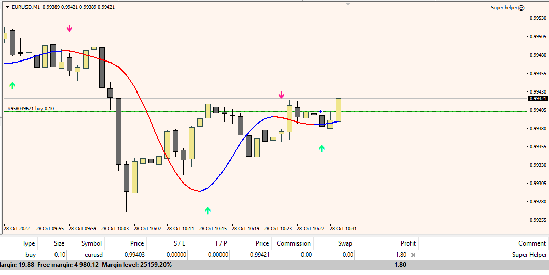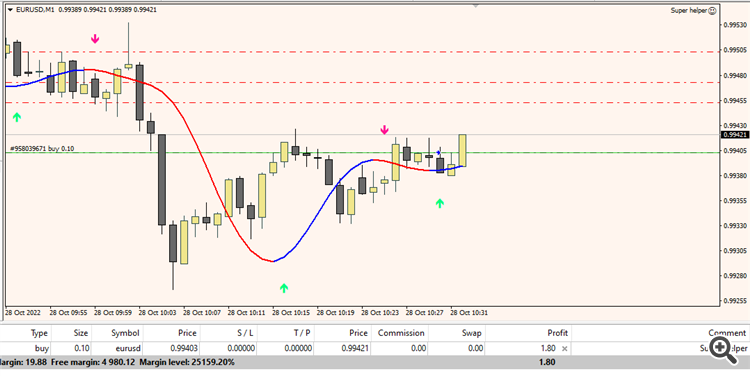 Let's consider an example, the numbers of buffers in this indicator are 3 and 4, which corresponds to the color of the arrow on the chart.