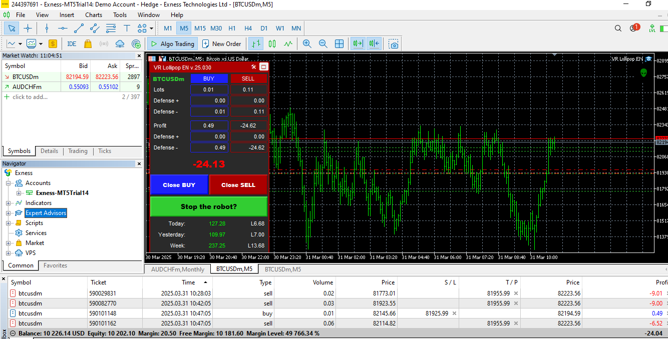 It works on Mt5 version only for BTCUSD