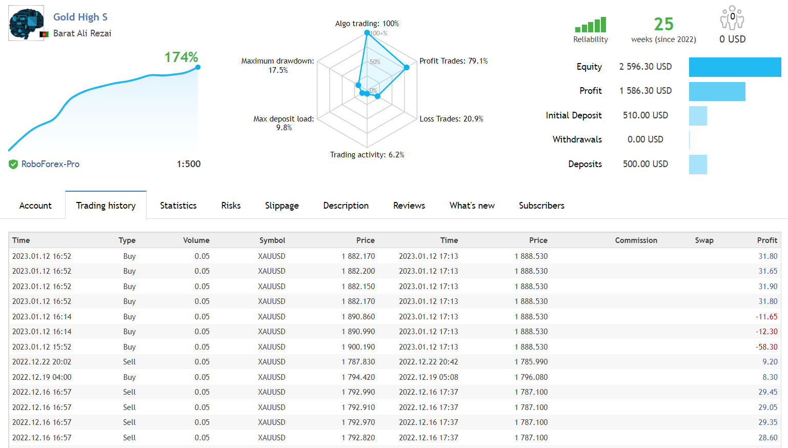 for example, my Gold High S signal is trading with a 0.05 lot size so the maximum risk is about $460; and the current balance of the account is $3034 so the maximum risk will be about 15%