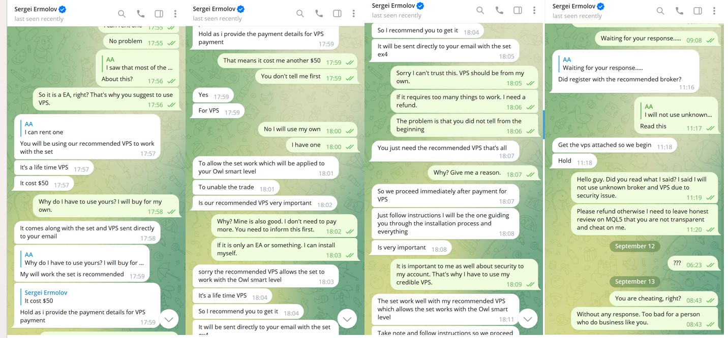 I have already responded to your feedback. Unfortunately, you fell for a scammer who introduces himself to me, you can find my original telegram nickname in the chat.