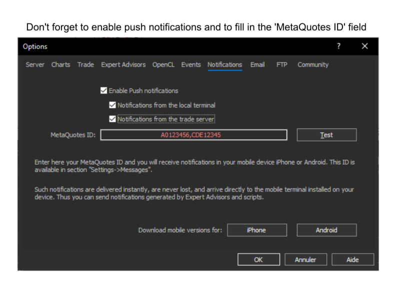 - Trading alerts (terminal and/or smartphone notifications).