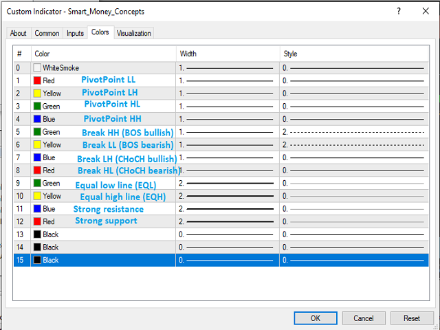 Thank you for good question! Small x's is about structure of price: red is pivot point LL (lower low), blue is HH (higher high), yealow is LH (lower high), green is HL (higher low). More detail in image a. Actually, user can change color by indicator setting image b.