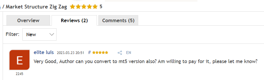 Just download, like it alot given you a 5 stars! Author can you please convert to mt5 version also? Am willing to pay for it please let me know?
