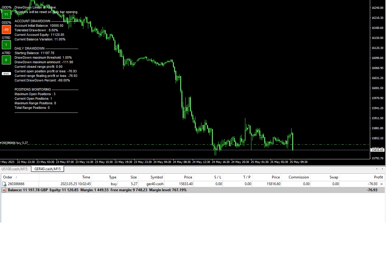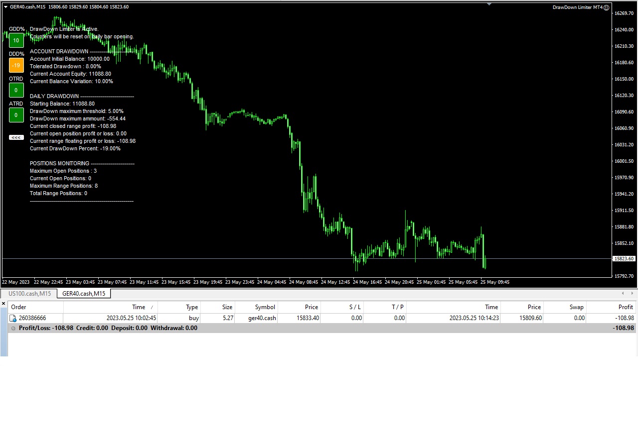 As for your last comment, the EA should close all the positions and delete new orders when DD reached without the need to close and reopen the terminal. You need to pay attention that there is a frequency of scanning configurable in the inputs. The default is 5 seconds, so the EA will be doing its check every 5 seconds. If you wish to have it faster you need to reduce this frequency. However, in the next version, we will also add an option to act onTick base for closing trades after DD is reached.
