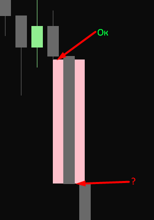 In the example below, the right candle has no shadow, and the high and open prices are the same. In this case, the zone should not be drawn.
