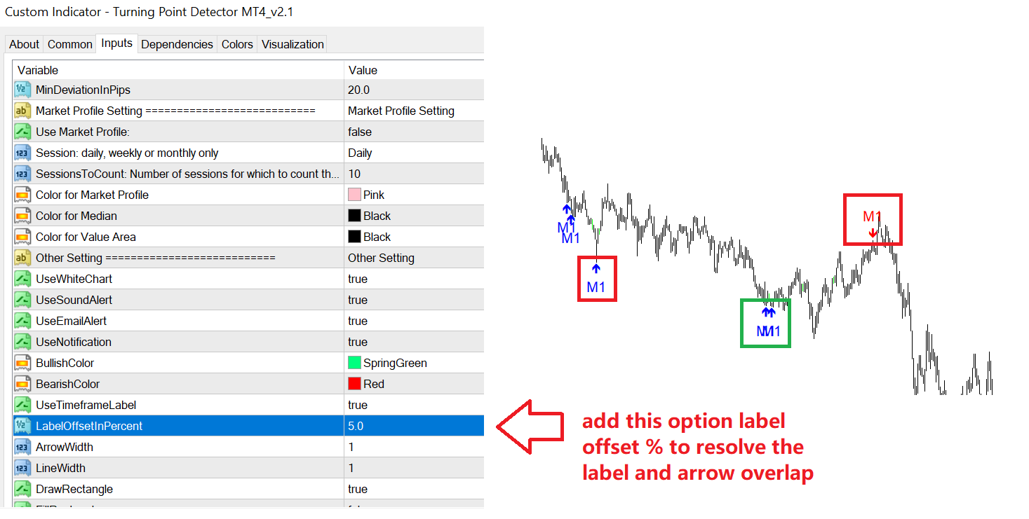 6. label offset % = 5 (to avoid symbol arrow and label HL,LL overlapping, allow user to set how many % see above example)