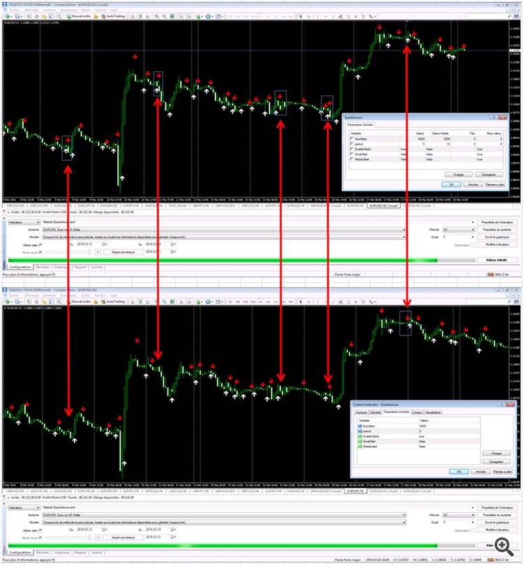 I rented the indicator "exactarrows" and there is a bug between the real and the backtest. Arrows appear in the backtest ant there are not in real !! Some arrows are there but not on the same candle !!! this is a huge problem to achieve an EA because the results are wrong !!! You can correct this problem as soon as possible! see picture