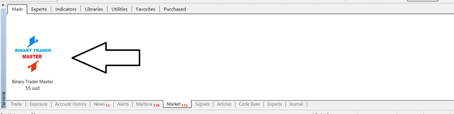 然后您需要在平台中打开“市场”选项卡。并找到指示器。再次下载。确保您直接通过 MT4 登录您的账户。