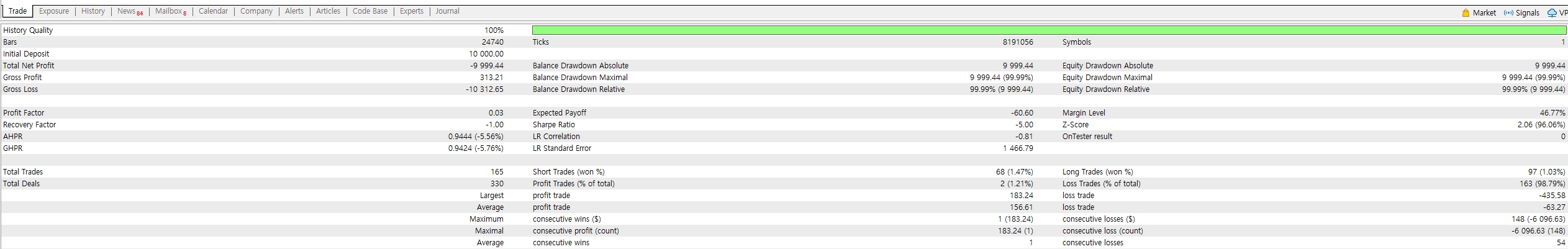 Hi Kim, which broker you ran the test on? I can see all the input parameters, just not sure of which broker used... the EA is very spread-sensitive (as you can imagine it being a quick scalper).. let me know which broker you demo'ed on so I can assess better.