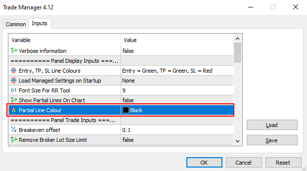Every time i launch mt4 everything is reset even if i save and load settings. Risk($) reset, SL reset, TP reset, nothing save.