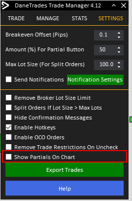New Settings Tab Modify more settings from inside the Trade Manager without having it restart. Great for uninterrupted trading More has been added.
