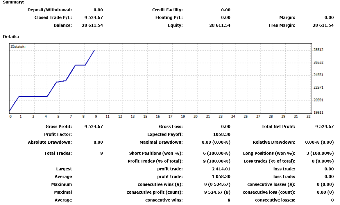 Result from live account in CZK currency from 1.9 - 30.10