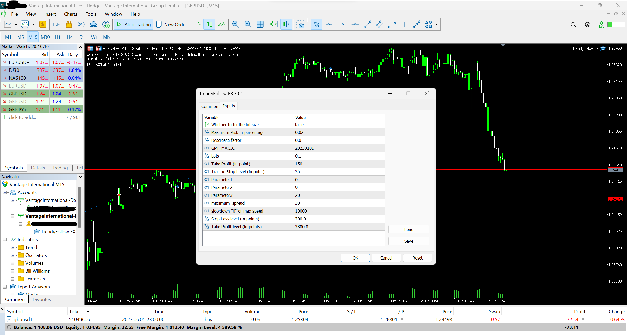 However, please note that we recommend M15GBPUSD again. It is more resistant to over-fitting than other currency pairs, and the default parameters are only suitable for M15GBPUSD.
