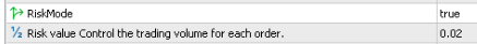 1.Redesign the risk value calculation, it will now disregard leverage. Our current risk calculation formula is: with a balance of $1000, a risk of 0.01 corresponds to an order size of 0.01 lots.The new default value is 0.03.
