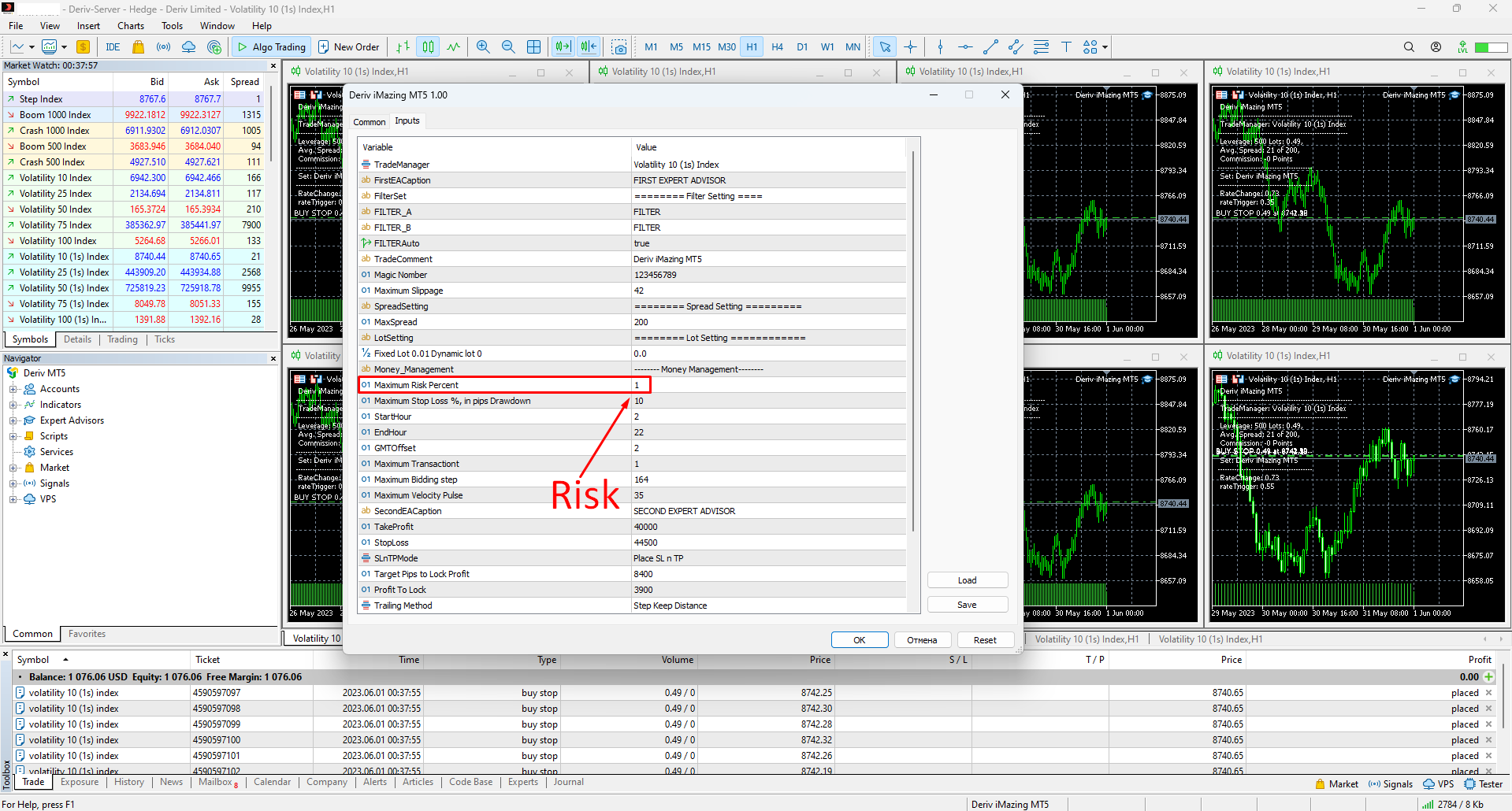 2.If you have done everything correctly, you need to set the desired (risk), by default it is set (Risk=1).